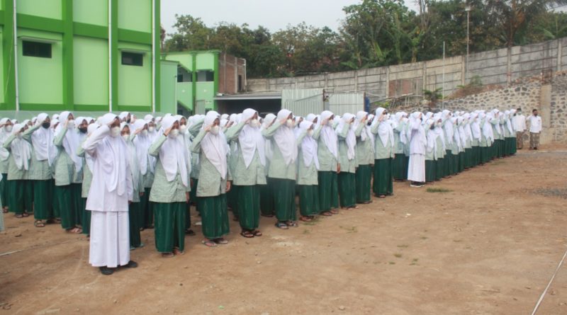 KUDUS- Ratusan santri dan ustadz – ustadzah Madrasah Aliyah Tahfidh Putri Yanbu’ul Qur’an 2 Muria menggelar apel pagi pada Senin