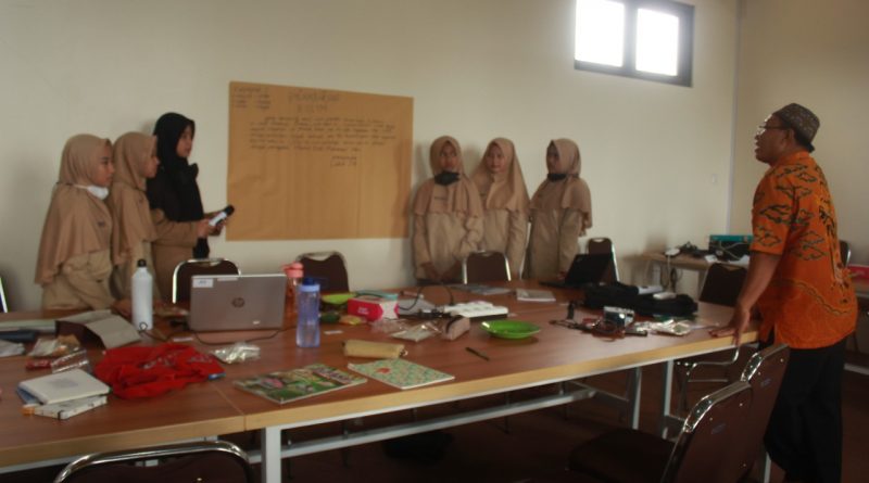 Foto bersama tim santriyah MTs TPYQ 2 Muria dengan penguji usai mempresentasikan hasil riset